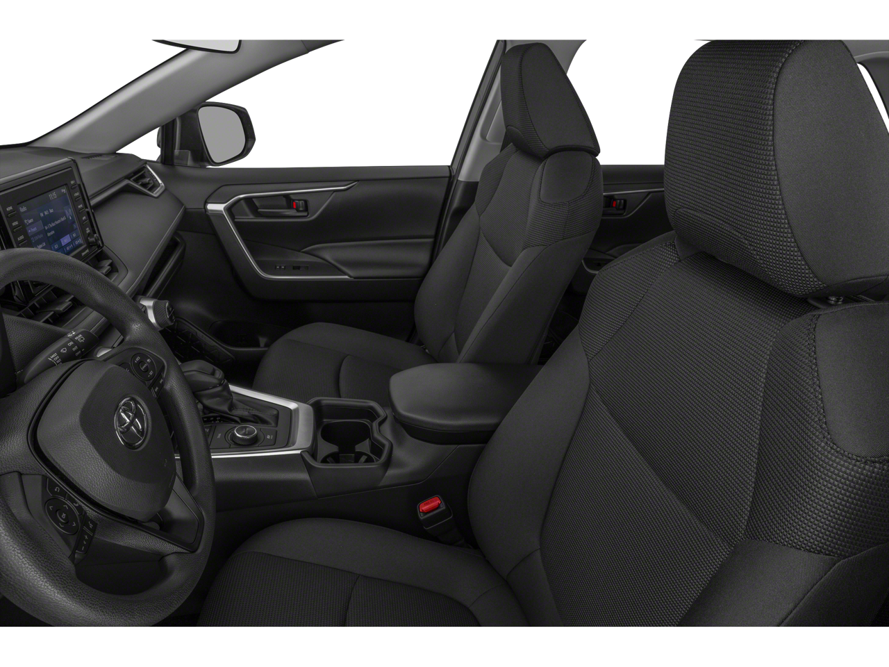Vaden is pleased to offer this Midnight Black Metallic 2019 Toyota RAV4 Hybrid LE with Black Cloth... Beautifully equipped with Carpet Mat Package (Carpet Cargo Mat and Carpet Floor Mats), 2.5L 4-Cylinder, 4-Wheel Disc Brakes, 6 Speakers, ABS brakes, Air Conditioning, Alloy wheels, AM/FM radio, Apple CarPlay, Auto High-beam Headlights, Automatic temperature control, Axle Ratio: TBD, Brake assist, Bumpers: body-color, Driver door bin, Driver vanity mirror, Dual front impact airbags, Dual front side impact airbags, Electronic Stability Control, Emergency communication system: Safety Connect, Exterior Parking Camera Rear, Fabric Seat Trim, Four wheel independent suspension, Front anti-roll bar, Front Bucket Seats, Front Center Armrest, Front dual zone A/C, Front reading lights, Front Sport Seats, Illuminated entry, Knee airbag, Low tire pressure warning, Occupant sensing airbag, Outside temperature display, Overhead airbag, Overhead console, Panic alarm, Passenger door bin, Passenger vanity mirror, Power door mirrors, Power steering, Power windows, Radio data system, Radio: Entune Audio w/App Suite, Rear anti-roll bar, Rear seat center armrest, Rear window defroster, Rear window wiper, Remote keyless entry, Roof rack: rails only, Speed control, Speed-sensing steering, Split folding rear seat, Spoiler, Steering wheel mounted audio controls, Telescoping steering wheel, Tilt steering wheel, Traction control, Trip computer, and Wheels: 17" x 7.0J Silver Aluminum Alloy! Approved customer communicated additions (repairing minor cosmetic flaw, added accessories, etc.) Prior to delivery will be subject to additional charges. ***All of Our Vaden New Car Pricing is Transparent, the price you see is the price you pay!!**** POWER PACKAGE, 2.5L 4-Cylinder.