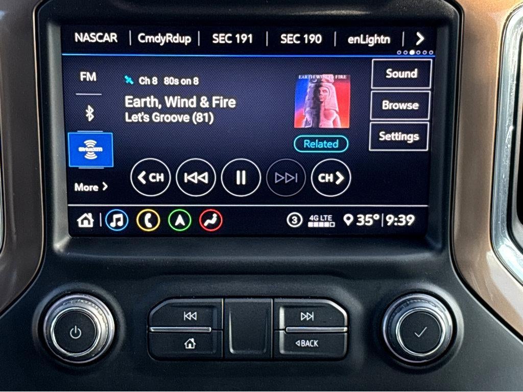 Vaden is pleased to offer this Northsky Blue Metallic 2020 Chevrolet Silverado 1500 High Country with Jet Black Leather... Beautifully equipped with High Country Deluxe (All-Weather Floor Liner (LPO) and Power Sunroof), Preferred Equipment Group 3LZ (10-Way Power Driver Seat w/Lumbar, 10-Way Power Passenger Seat Adjuster w/Lumbar, 12-Volt Rear Auxiliary Power Outlet, 120-Volt Bed Mounted Power Outlet, 120-Volt Instrument Panel Power Outlet, 2nd Row Heated Outboard Seats, 4G LTE Wi-Fi Hot Spot Capable, 8" Driver Information Center, Advanced Trailering System, Auto-Dimming Inside Rear-View Mirror, Auxiliary External Transmission Oil Cooler, Bluetooth娨 For Phone, Chevrolet Connected Access Capable, Chevytec Spray-On Black Bedliner, Chrome Assist Steps, Chrome Grille, Chrome Recovery Hooks, Color-Keyed Carpeting Floor Covering, Compass, Deep-Tinted Glass, Driver Memory, Dual Exhaust w/Polished Outlets, Electric Rear-Window Defogger, Electrical Lock Control Steering Column, Floor Mounted Center Console, Front Carpeted Floor Mats, Front LED Fog Lamps, HD Radio, HD Rear Vision Camera, Heated Driver & Front Outboard Passenger Seats, Heated Steering Wheel, Heavy-Duty Rear Locking Differential, Hitch Guidance, Hitch Guidance w/Hitch View, Integrated Trailer Brake Controller, Keyless Open & Start, Lane Change Alert w/Side Blind Zone Alert, Leather Wrapped Steering Wheel, LED Cargo Area Lighting, Manual Tilt/Telescoping Steering Column, OnStar & Chevrolet Connected Services Capable, Outside Heated Power-Adjustable Mirrors, Painted Mirror Caps, Power Door Locks, Power Front Passenger Windows w/Express Up/Down, Power Front Windows w/Driver Express Up/Down, Power Rear Windows w/Express Down, Power Sliding Rear Window w/Rear Defogger, Rear Carpeted Floor Mats, Rear Cross Traffic Alert, Rear Dual USB Charging-Only Ports, Rear Wheelhouse Liners, Remote Vehicle Starter System, SiriusXM w/360L, Steering Wheel Audio Controls, Steering Wheel Mounted Electronic Cruise Control, Theft Deterrent System (Unauthorized Entry), Ultrasonic Front & Rear Park Assist, Universal Home Remote, Ventilated Driver & Front Passenger Seats, and Wireless Charging), Safety Package II (Adaptive Cruise Control - Camera, Automatic Emergency Braking, Following Distance Indicator, Forward Collision Alert, Front Pedestrian Braking, IntelliBeam Automatic High Beam On/Off, Lane Keep Assist w/Lane Departure Warning, and Safety Alert Seat), Technology Package (15" Diagonal Multicolor Head-Up Display, Bed View Camera, HD Surround Vision w/2 Trailer View Camera Provisions, and Rear Camera Mirror), Trailering Package, Up-Level Rear Seat w/Storage Package, 8-Speed Automatic, Jet Black Leather, 170 Amps Alternator, 3.23 Rear Axle Ratio, 4-Wheel Disc Brakes, 7 Speakers, ABS brakes, Air Conditioning, Alloy wheels, AM/FM radio: SiriusXM with 360L, Apple CarPlay/Android Auto, Auto-dimming door mirrors, Auto-dimming Rear-View mirror, Automatic temperature control, Brake assist, Bumpers: body-color, Delay-off headlights, Driver door bin, Driver vanity mirror, Dual front impact airbags, Dual front side impact airbags, Electronic Stability Control, Front anti-roll bar, Front Bucket Seats, Front Center Armrest, Front dual zone A/C, Front fog lights, Front reading lights, Front wheel independent suspension, Fully automatic headlights, Garage door transmitter, Heated door mirrors, Heated front seats, Heated rear seats, Heated steering wheel, Heavy Duty Suspension, Illuminated entry, Low tire pressure warning, Memory seat, Navigation System, Occupant sensing airbag, Outside temperature display, Overhead airbag, Overhead console, Panic alarm, Passenger door bin, Passenger vanity mirror, Perforated Leather-Appointed Seat Trim, Power door mirrors, Power driver seat, Power passenger seat, Power steering, Power windows, Premium audio system: Chevrolet Info