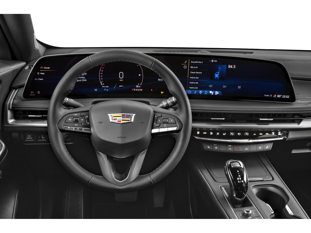 - Opens or closes when the system senses the key fob and the driver extends their foot under the left-hand side of the rear bumper over an image of the Cadillac Crest projected under the vehicle