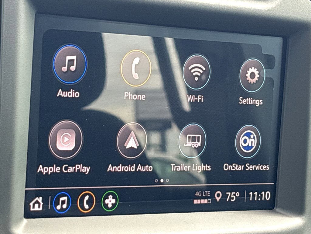 - Audio system, Chevrolet Infotainment 3 system 7" diagonal HD color touchscreen, AM/FM stereo, Bluetooth® audio streaming for 2 active devices, voice command pass-through to phone, Wireless Apple CarPlay and Wireless Android Auto compatibility